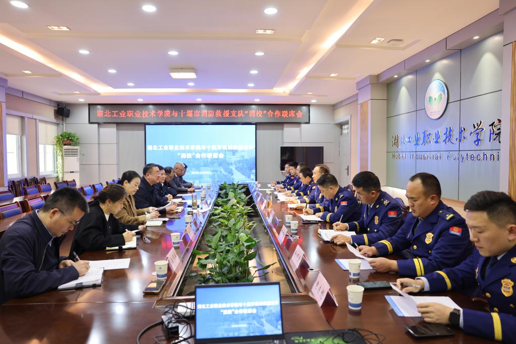 (通讯员:李季)2025年10月22日下午,湖北工业职业技术学院与十堰市消防救援支队“消校”合作联席会在学校行政楼302会议室举行。校党委副书记、校长郑强,市消防救援支队党委书记、政治委员李支龙及双方相关负责人出席会议,校党委委员、宣传部长郑妍妍主持会议。