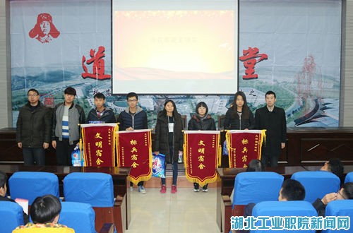 首先由宿管部代表宣读了学生宿舍管理条例,宿管部、生活部代表分别对教室、宿舍卫生情况进行总结,周涛书记和辅导员老师为获奖班级、宿舍颁发荣誉证书和奖品。
