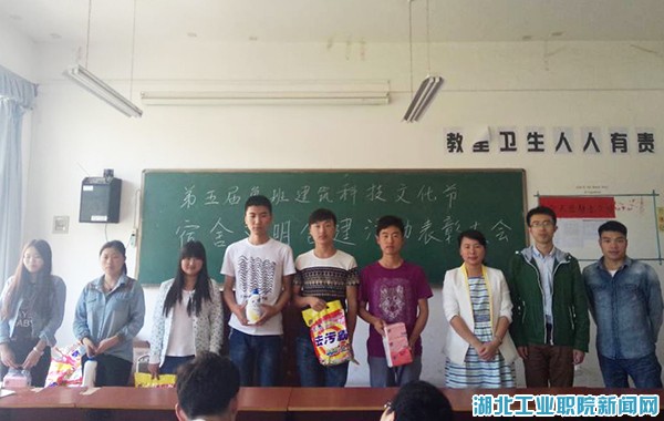 新闻网讯(通讯员张伟学生记者张永琦)为营造一个和谐融洽、富有特色、整洁卫生的学习居住环境,建筑工程系开展了文明宿舍创建系列活动,并于5月8日在1402教室进行文明宿舍的表彰。