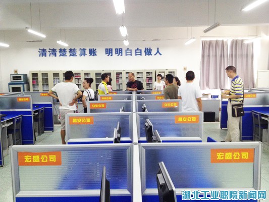 在经济贸易系,大家参观了会计、物流管理、电子商务、市场营销等专业的校内实训基地,还有ERP企业营运沙盘实训室,和设立在教学楼的会计师事务所,对按公司分组,真做帐、做真账的会计手工帐实训室,印象深刻。