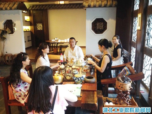 在参观过程中,组建并指导学院武当道茶艺术团多次获奖,刚受邀参加中俄“万里茶道”表演载誉归来的旅游与涉外事务系李晓梅副教授,在茶艺实训室为大家展示了茶艺文化,让大家有幸感受到武当茶艺和武当茶文化的独特韵味。