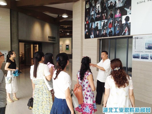 到达艺术设计系后,该系负责人热情地向大家介绍了教改理念、思路和做法,引导参观了教师个人公司、青年设计师孵化基地、工作坊、教师工作室、实训室等,独具匠心的设计布局、随处可见的师生作品、浓郁高雅的文化氛围让人充分领略到这座艺术殿堂的魅力。