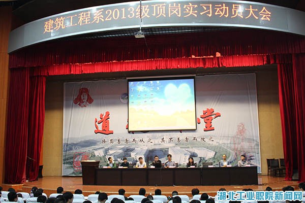 新闻网讯(学生记者李晓天)为做好顶岗实习的准备工作、确保顶岗实习的顺利完成,9月25日下午,建筑工程系在会议中心举行了2013级顶岗实习动员大会,系主任黄朝广、系党总支书记张凤娟、副主任严航、副书记周涛以及部分教师出席本次会议,2013级全体同学参加大会。