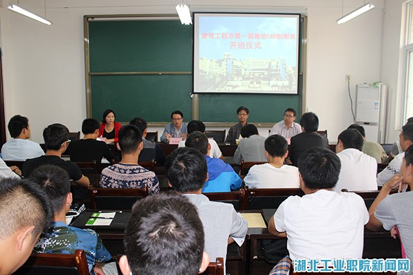 新闻网讯(学生记者李晓天)为提升学生CAD绘图专业技能水平,增强就业竞争力,建筑工程系于10月16日在1203教室举行鲁班CAD制图班开班仪式。校企合作单位中江设计院总经理幸西刚,该系主任黄朝广、系党总支副书记周涛、培训班班主任吴彬以及32名学员参加了开班仪式。
