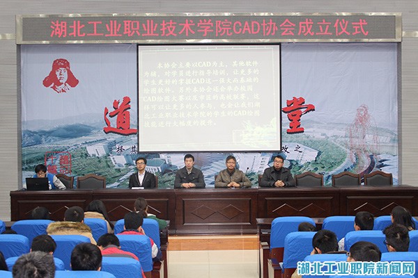 新闻网讯(文/戴小吉图/李晓天)为给热爱CAD软件的同学提供一个学习深化的机会,大学生CAD协会在学术报告厅正式成立,建筑工程系主任黄朝广、系党总支副书记周涛,我院大学生记者团、茶艺社、青春E行服务队、建筑工程系学生会等学生社团、协会及CAD爱好者参加本次仪式。