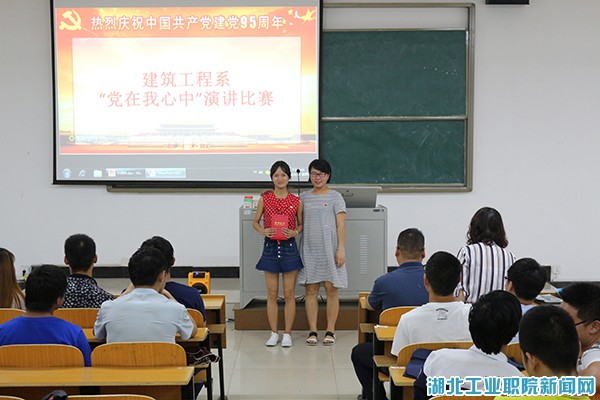 新闻网讯(学生记者李晓天 潘永辛)为庆祝中国共产党成立95周年,抒发爱党、敬党的情怀,6月30日下午,建筑工程系在科技楼1325教室举行了 “党在我心中” 主题演讲比赛。系党总支书记张凤娟、副书记周涛,系办公室主任唐克静,各年级辅导员及部分专业教师出席本次大赛,2014级全体预备党员及部分入党积极分子参加了本次比赛。