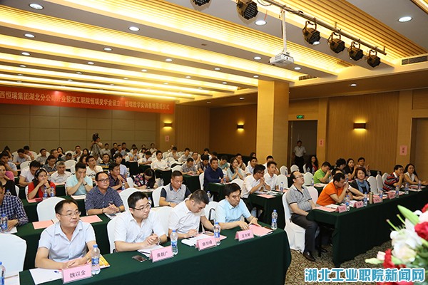 新闻网讯(通讯员严航)9月8日上午,陕西恒瑞集团湖北分公司开业暨湖北工业职业技术学院“恒瑞”奖学金设立、恒瑞教学实训基地落成仪式在武当国际酒店隆重举行。仪式邀请了陕鄂两地百余名建筑业、装饰业及新媒体业的行业翘楚参加。我院建筑工程系2014届优秀毕业生冯小兵主持开办了陕西恒瑞集团湖北分公司并担任总经理。