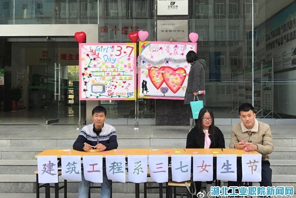 新闻网讯(通讯员张伟 学生记者 潘永辛 严涵)“你是女生你做主,你是女生你快乐,愿你跟随梦想旋律,尽享快乐岁月!春风十里不如你,祝你女生节快乐!”为了庆祝“女生节”,3月7日一大早,建筑工程系团总支学生会成员就来到了科技楼前,搬来桌椅、摆起留言板,为建工女生送上节日的祝福。